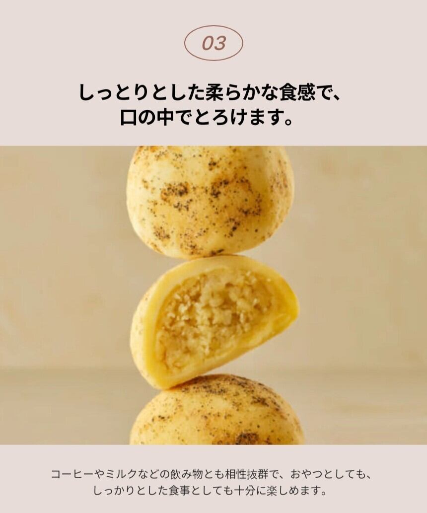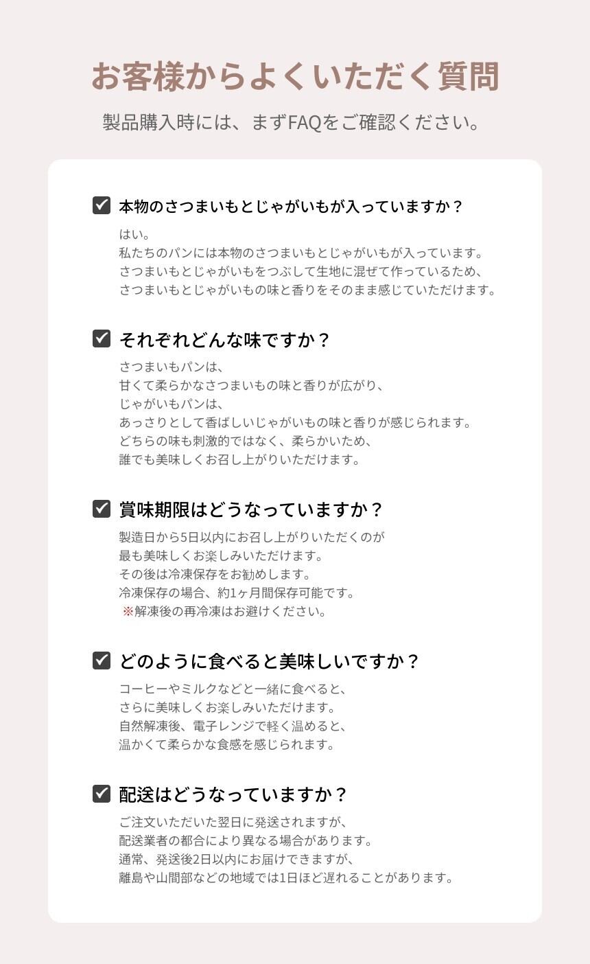 名:サツマイモ 名称:ゴグマパン 原材料名:タピオカ粉、クリームチーズ、 小麦粉、バター、塩、卵、サツマイモパウダー、 サツマイモ、砂糖、胡椒 内容量:110g 賞味期限:製造日より 冷凍: 21日 冷蔵: 7日 常温: 5日 保存方法:直射日光を避け、常温で保存。 開封後はお早めにお召し上がりください。 ・冷蔵:600Wで30秒 ・冷凍:解凍1分10秒後、600Wで45秒